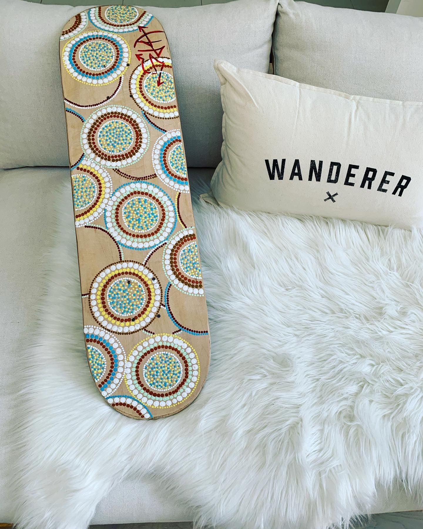 Original artwork on a repurposed skateboard. Fun and cool artwork for the home π